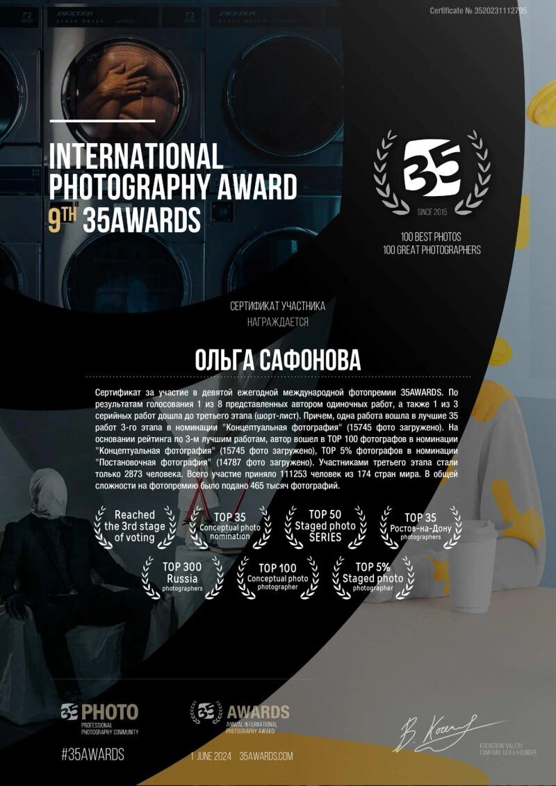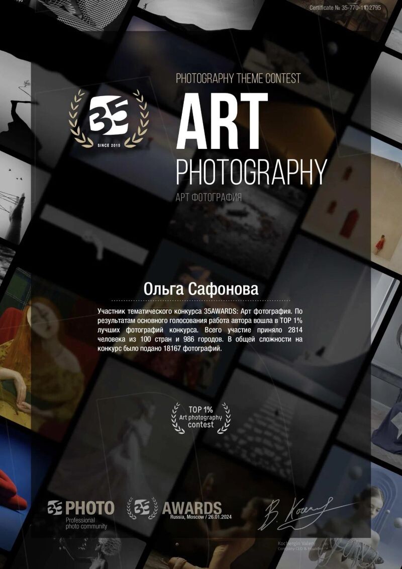 - Фотопремия 35awards, арт-фотография, ТОР 1% лучших фотографий конкурса, 2023 г.