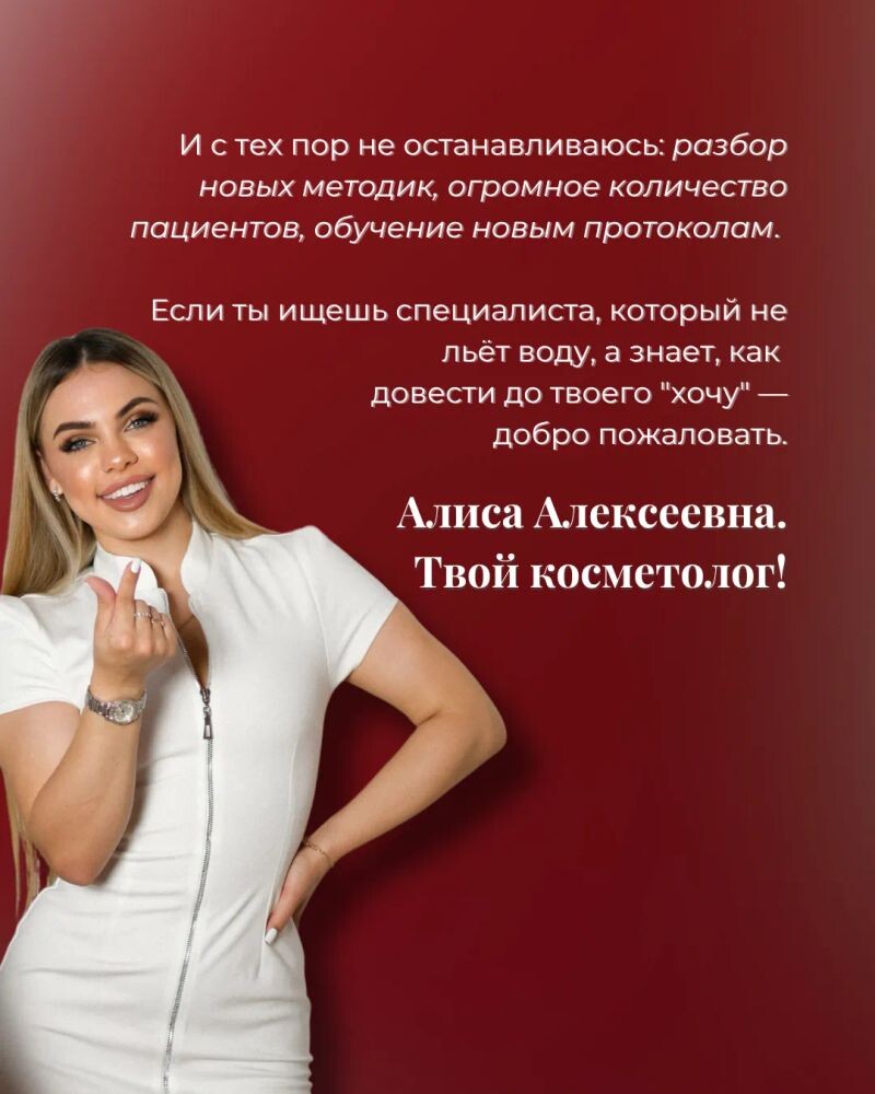 ► Связаться с Самохваловой Алисой Алексеевной можно за пару минут. Нажмите на кнопку «Записаться к мастеру» и заполните короткую форму.