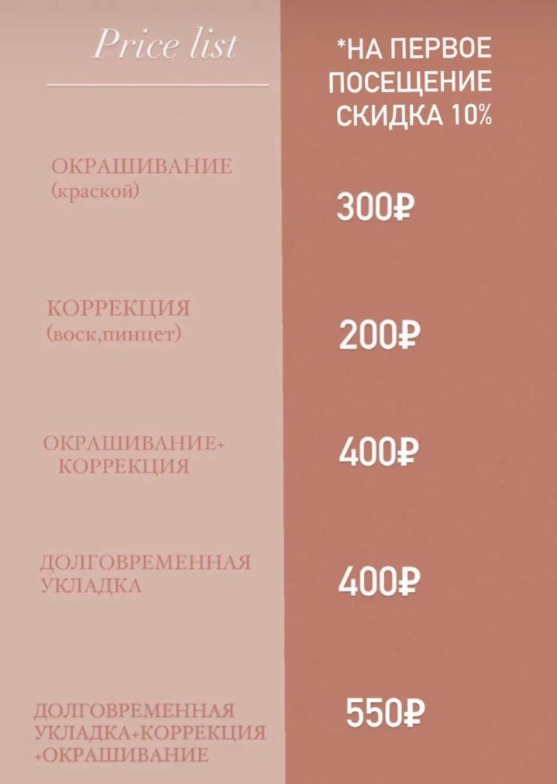 - Ламинирование бровей 550 ₽ за усл.Окрашивание и Коррекция входят в стоимость