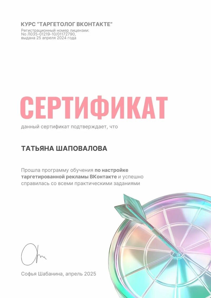 - Лицензированная школа рекламы Софью Шабаниной, 2025 г.