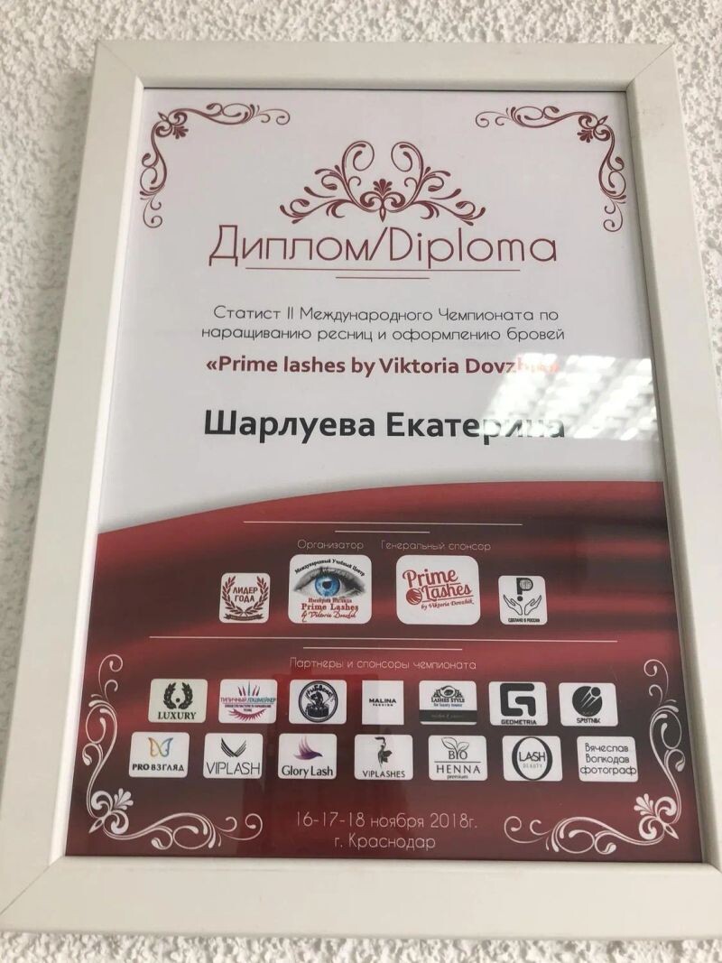 - Статист ll международного чемпионата по наращиванию ресниц и оформлению бровей «Prime lashes by Victoria Dovzhik», 2018 г.