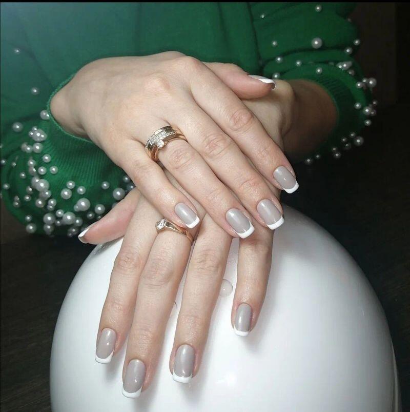 - Французский маникюр 1200 ₽ за усл.Снятие, маникюр, покрытие Френч