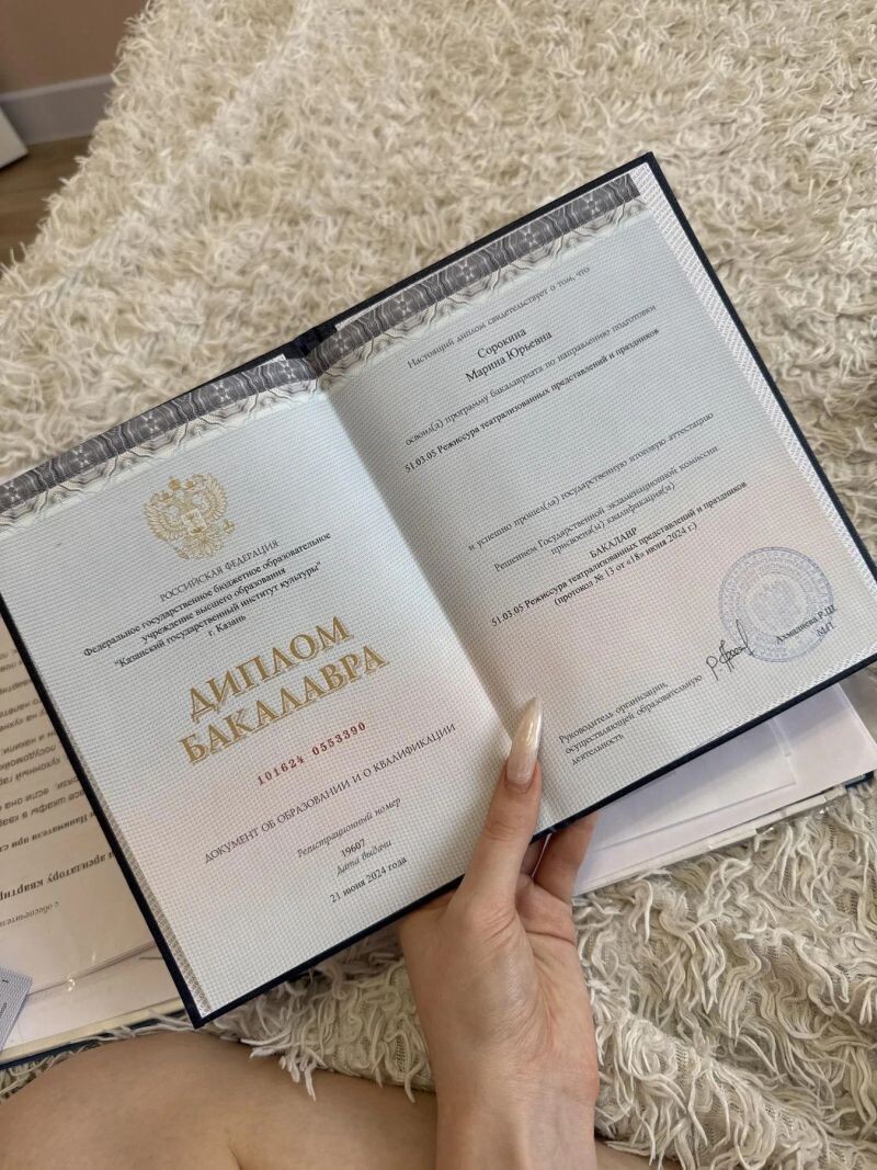 - Казанский Государственный институт культуры, г. Казань. Факультет театра, кино и телевидения, режиссура театрализованных представлений и праздников, 2019–2024 гг.