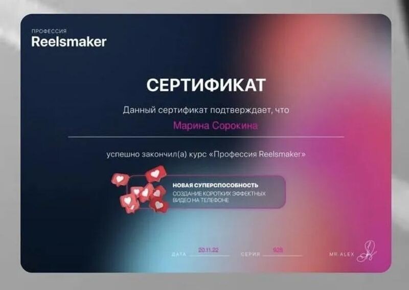 - Профессия Reelsmaker, 2022 г.