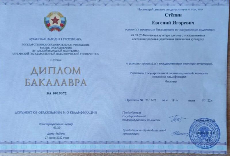 - Луганский государственный педагогический университет Физическая культура для лиц с отклонениями в состоянии здоровья (адаптивная физическая культура), 2018–2022 гг.