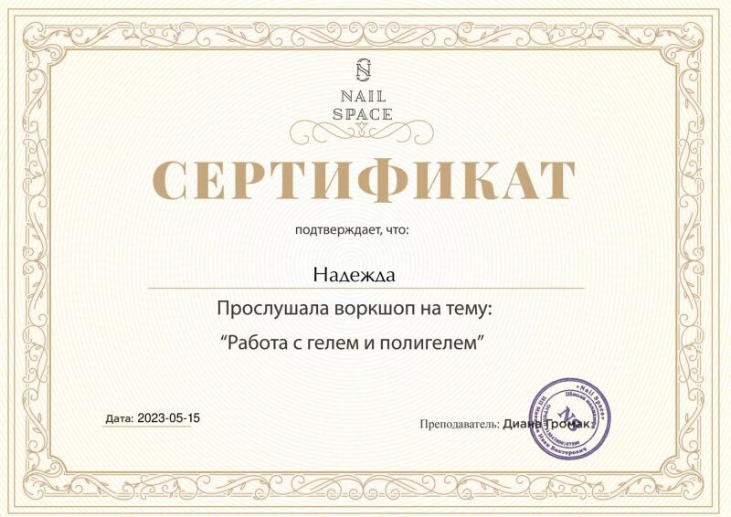 - Nail Space, работа с гелем и полигелем, 2023 г.