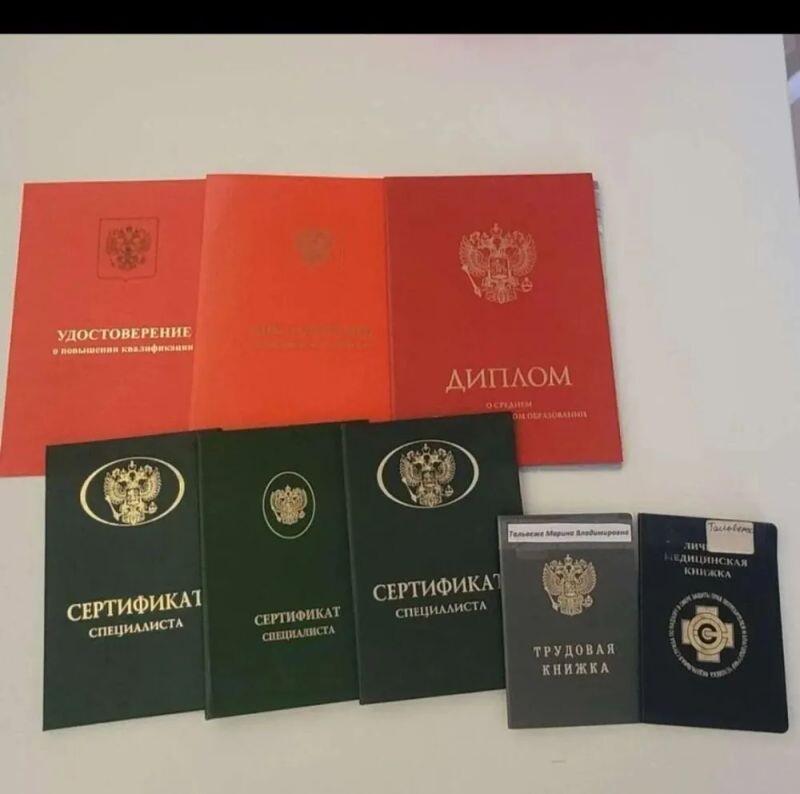 - Диплом медицинского образования, диплом детского квалифицированого массажиста, сертификат массажиста (с 2014 г.).