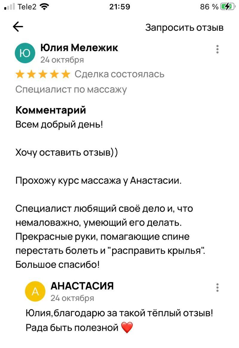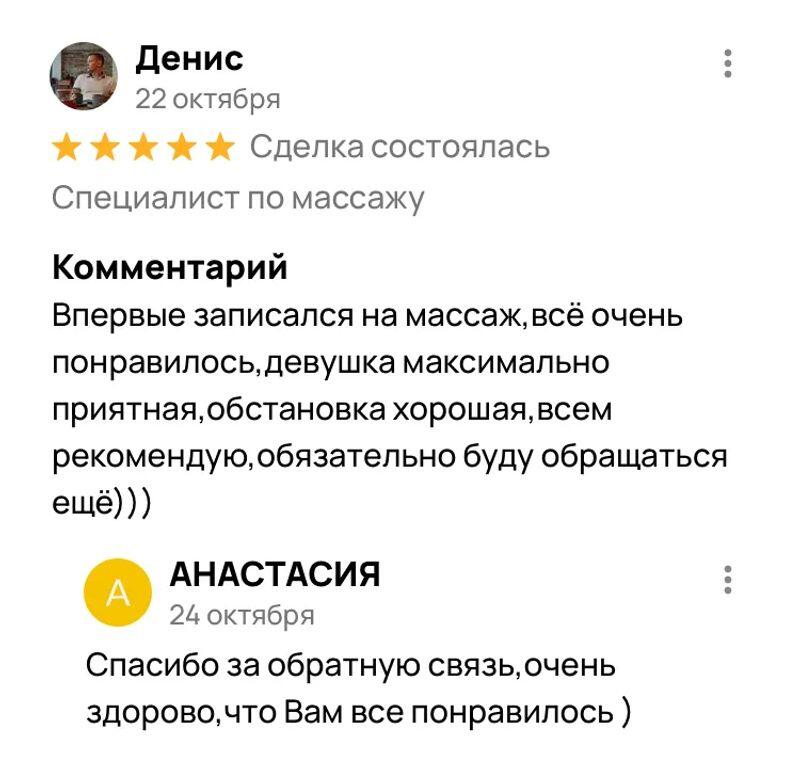 - Массаж спины 1000 ₽ за ч