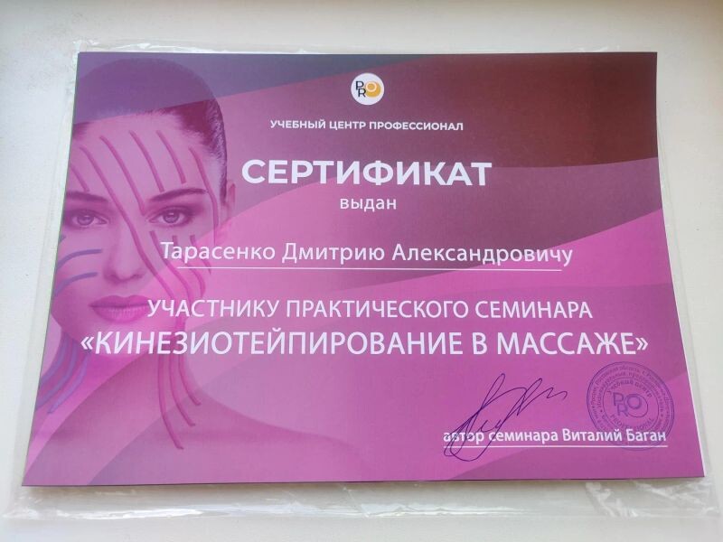 - Учебный центр «Профессионал», кинезиотейпирование в массаже, 2021 г.