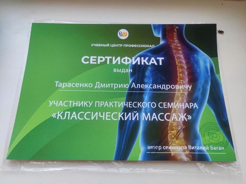 - Учебный центр «Профессионал», классический массаж, 2020–2021 гг.