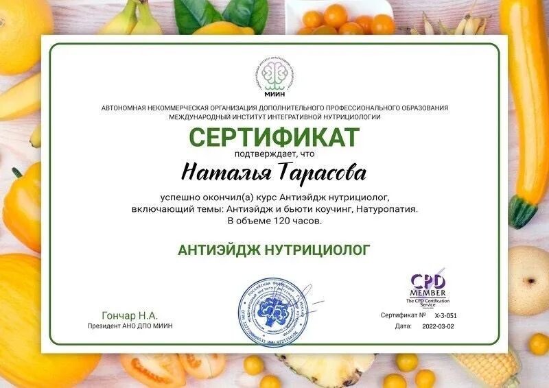 - МИИН, антиэйдж нутрициолог, 2021–2022 гг.