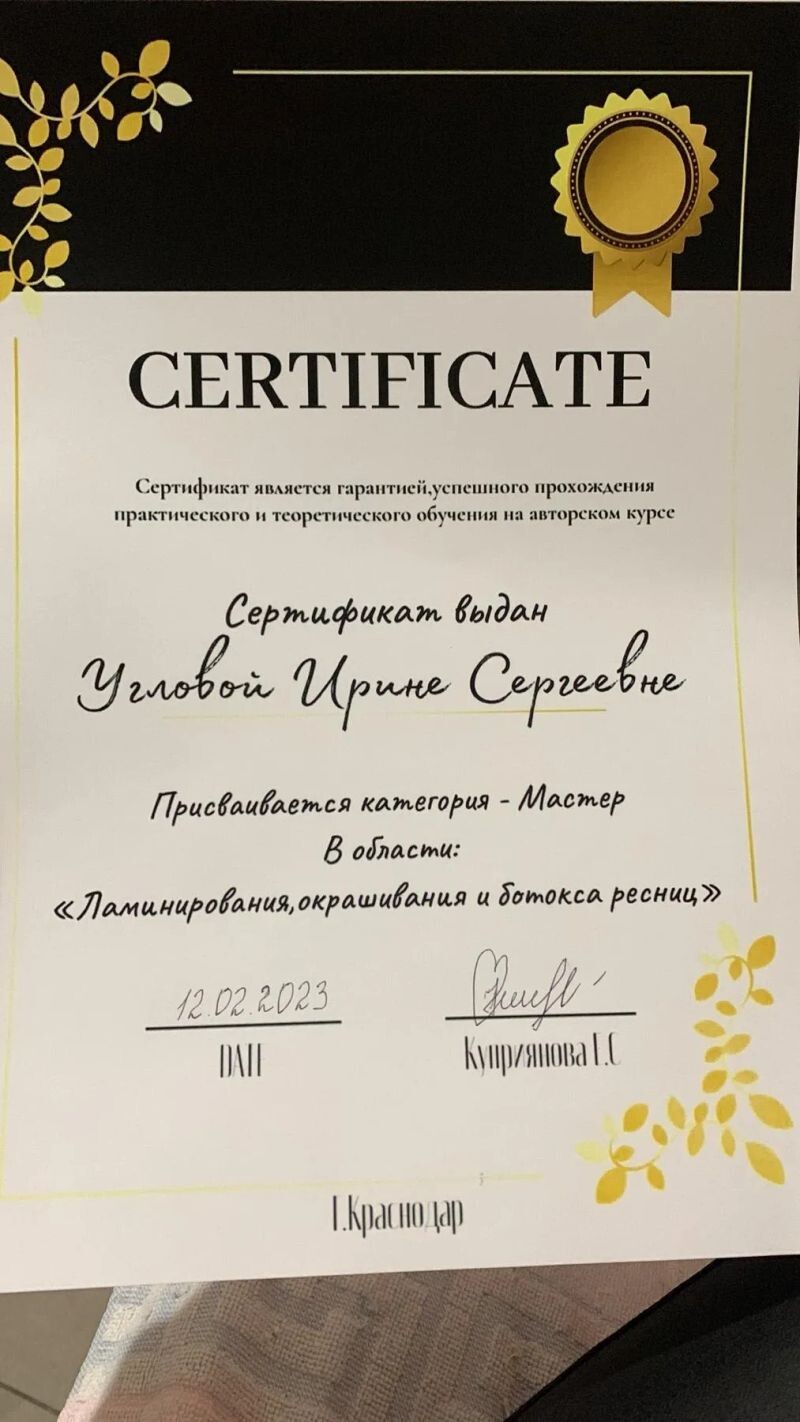 - Авторский курс Е.С. Куприяновой, ламинирование и окрашивание ресниц, 2023 г.
