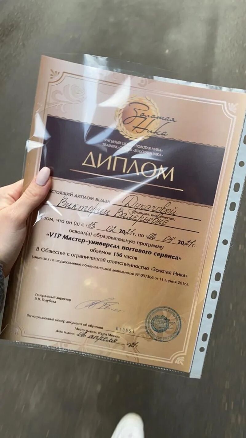 - ООО «Золотая Ника», программа «VIP мастер-универсал ногтевого сервиса», 2021 г.