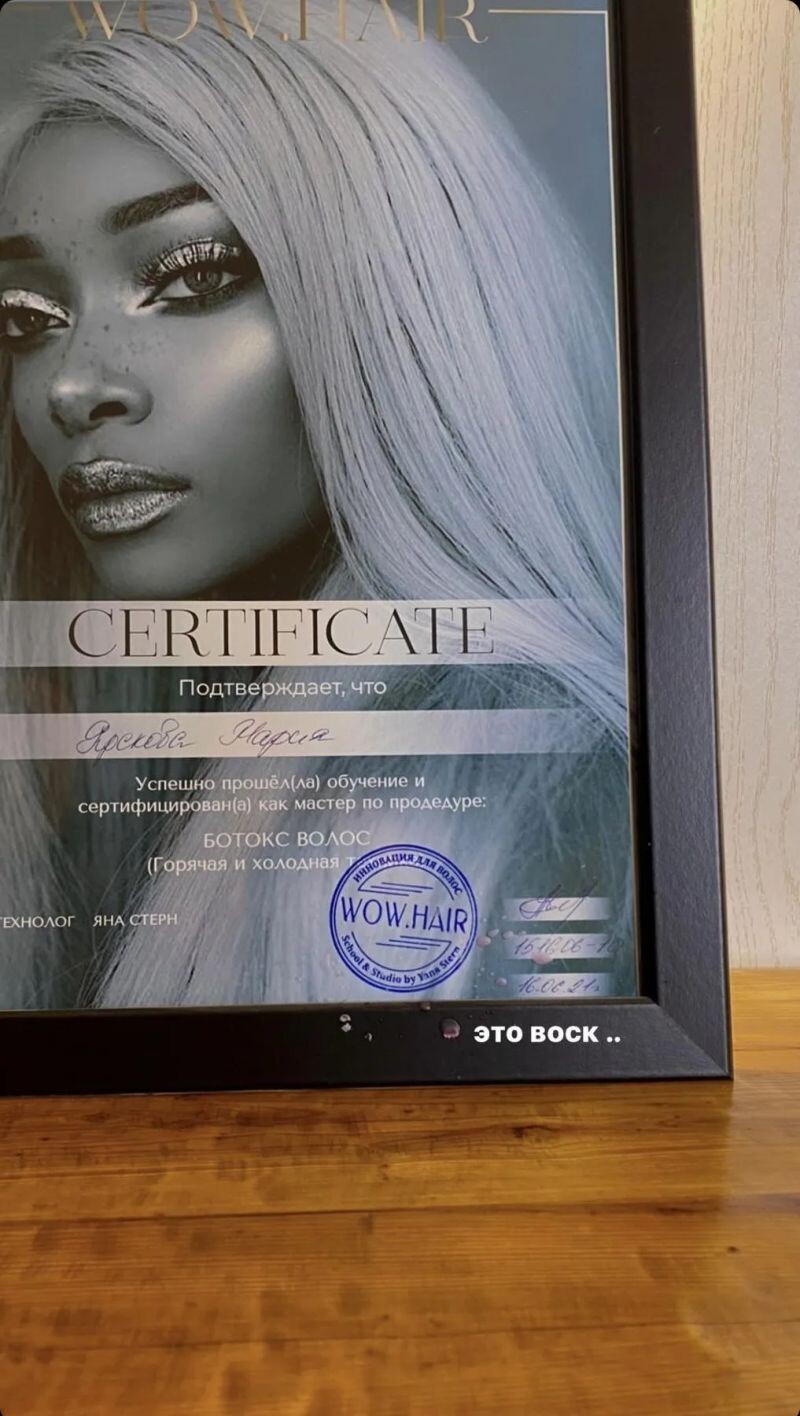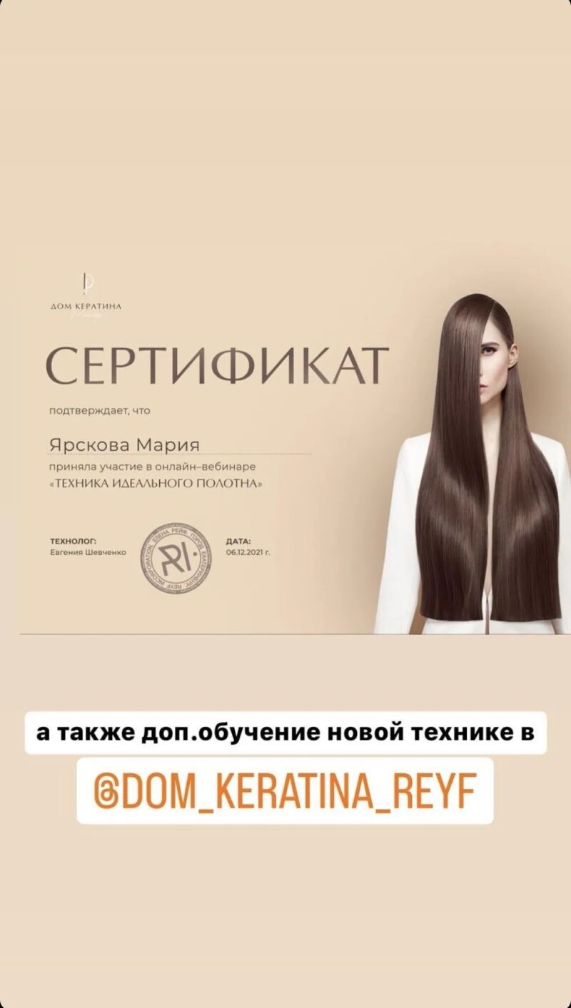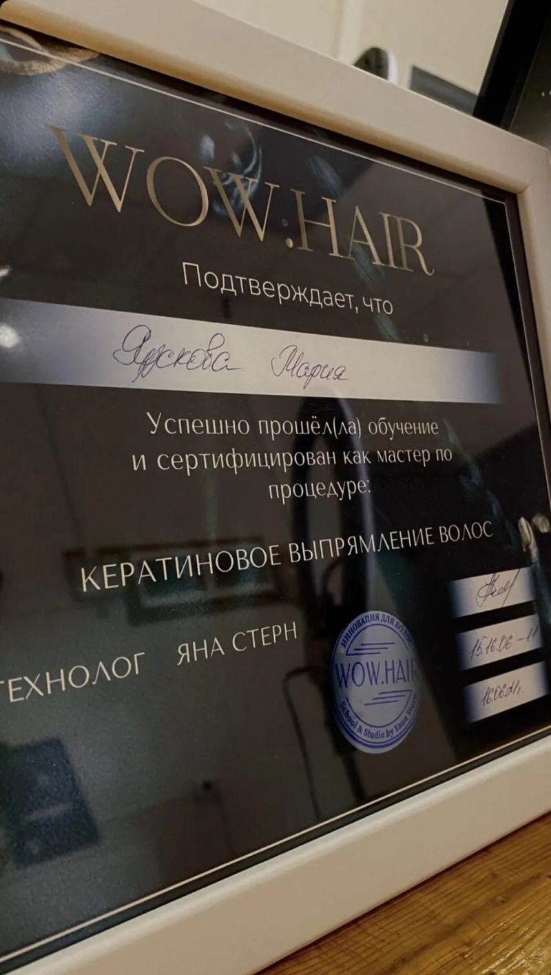 - Wow. Hair, авторский курс Яны Стерн «Кератиновое выпрямление волос», 2021 г.