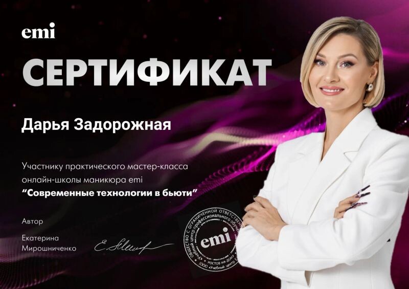 ► Связаться с Задорожной Дарьей Андреевной можно за пару минут. Нажмите на кнопку «Записаться к мастеру» и заполните короткую форму.