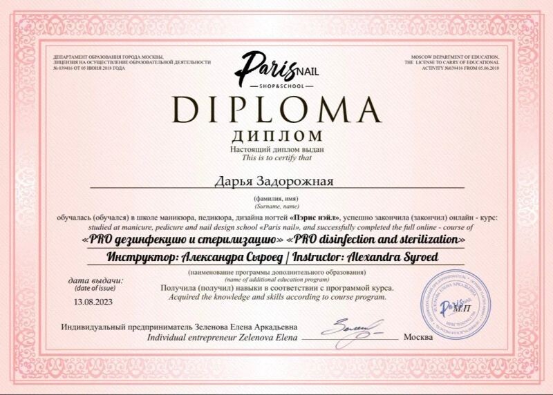 Отзывы о Задорожной Дарье Андреевне