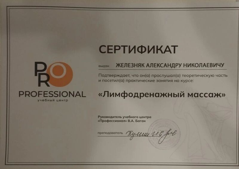 - Учебный центр "Профессионал", курс "Лимфодренжный массаж", 2025 г.