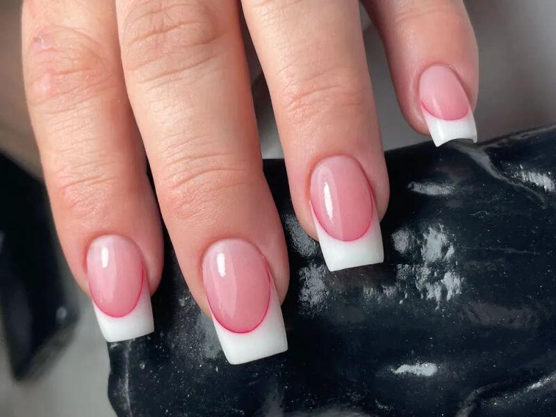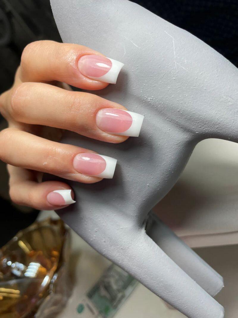 - Французский маникюр 2500 ₽ за усл.Маникюр с гель-лаком и френч