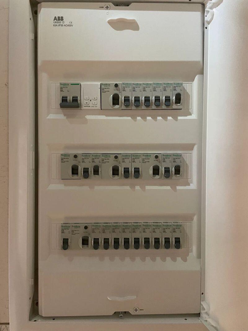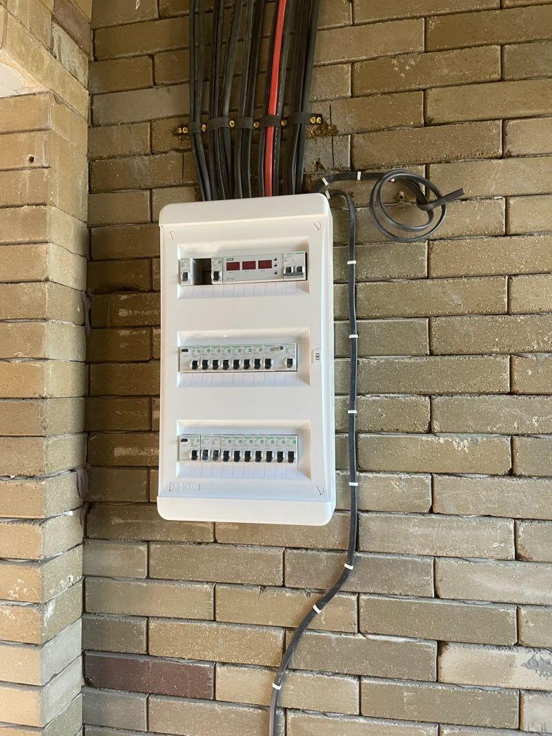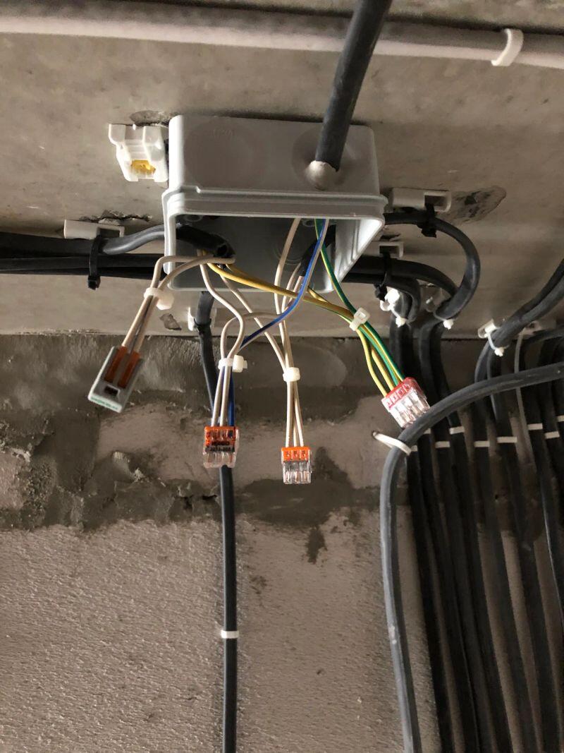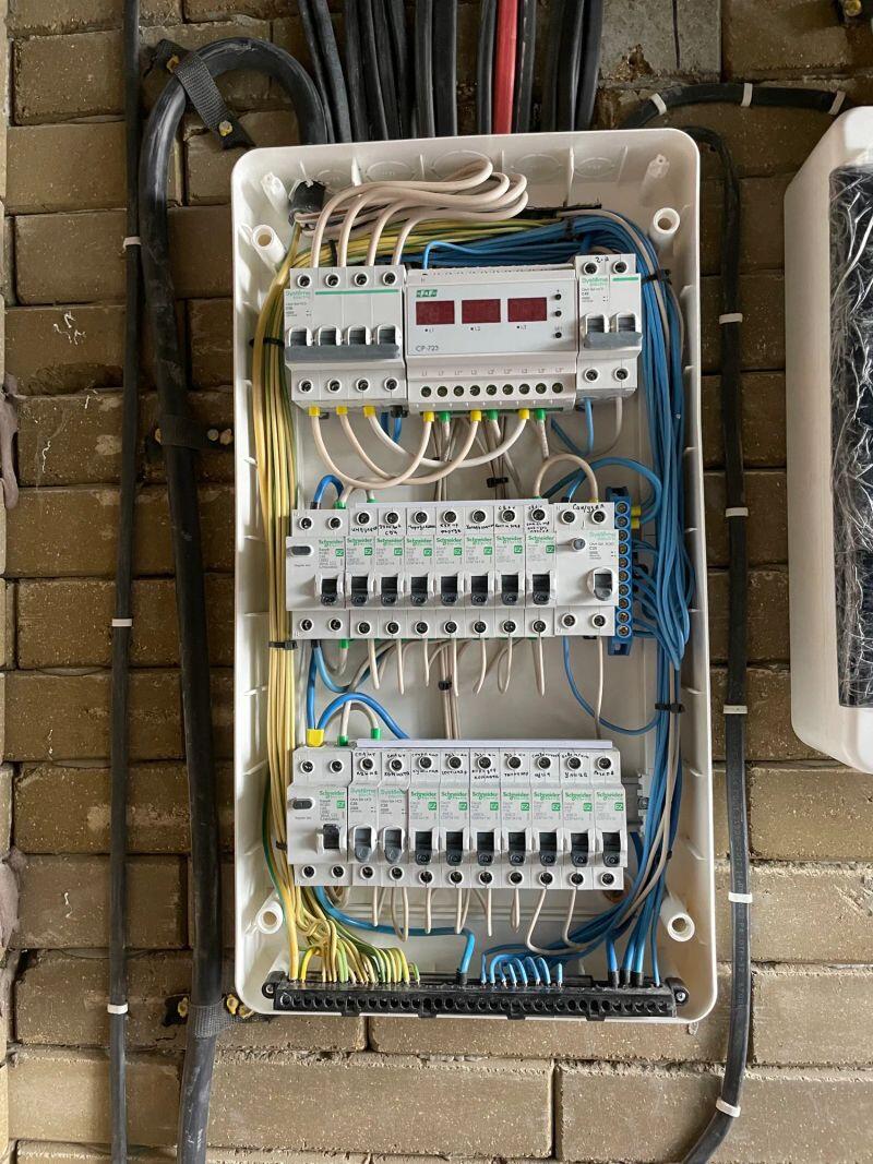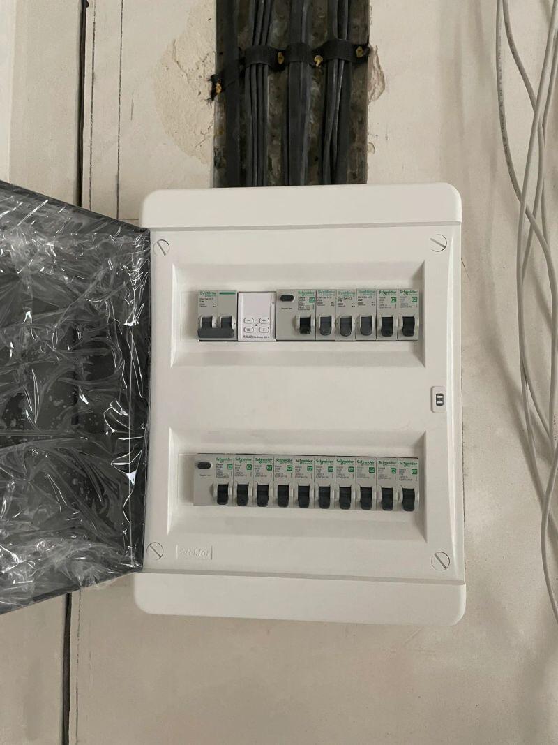 Полностью меняли проводку в студии (≈30 м²) от застройщика, добавляли розетки и выводы, меняли щиток.