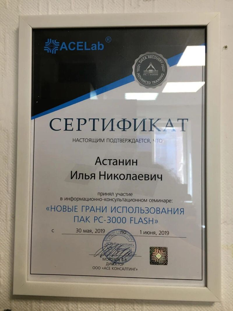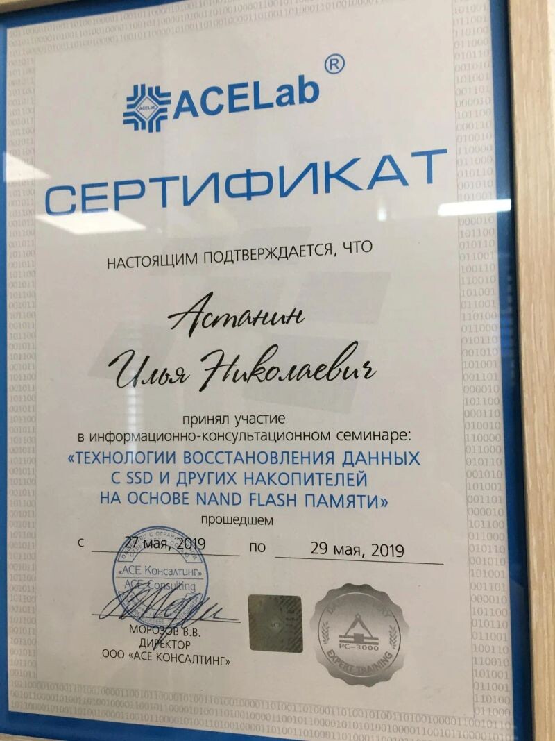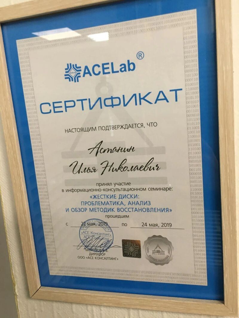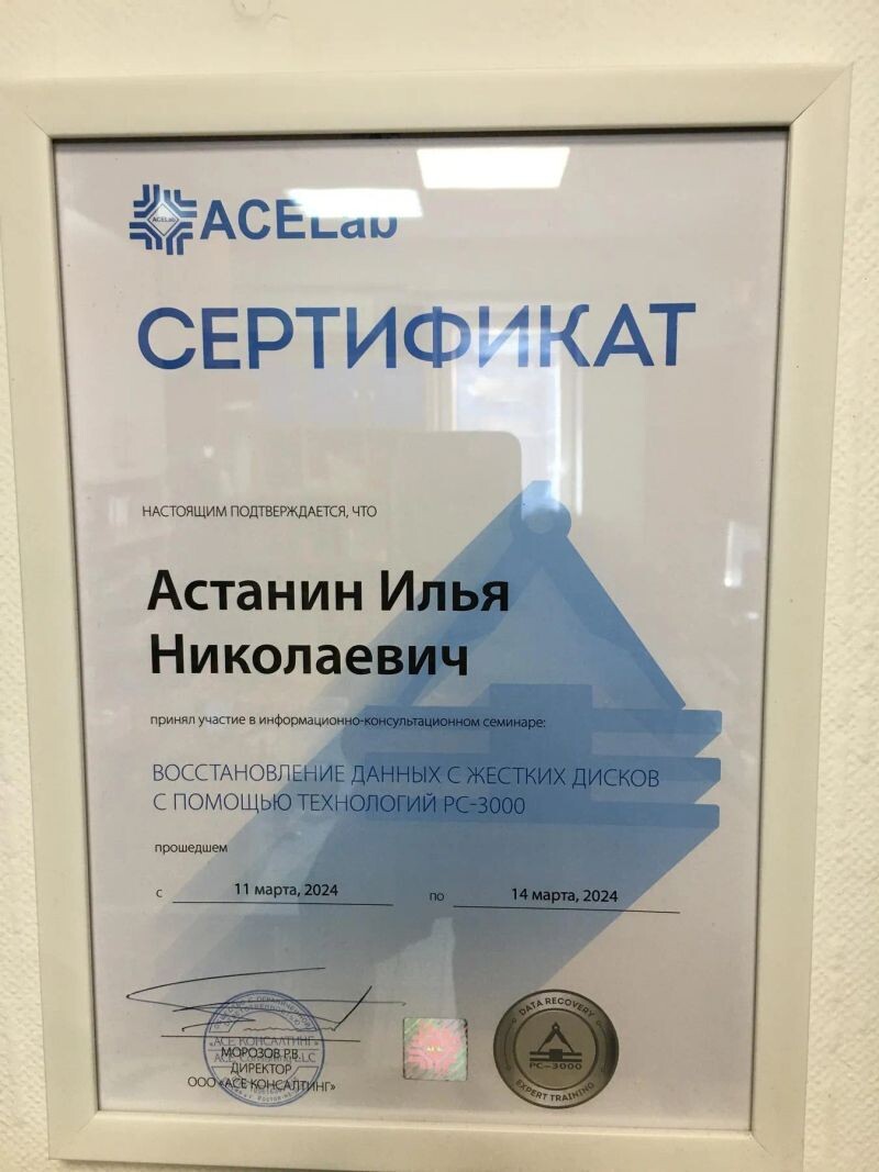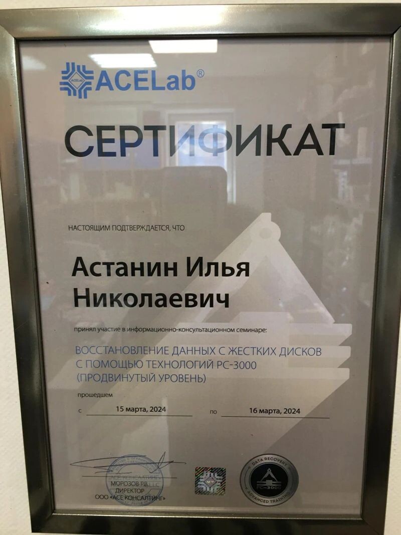 - ACELab, восстановление данных с жёстких дисков с помощью технологий РС-3000 (продвинутый уровень), 2024 г.