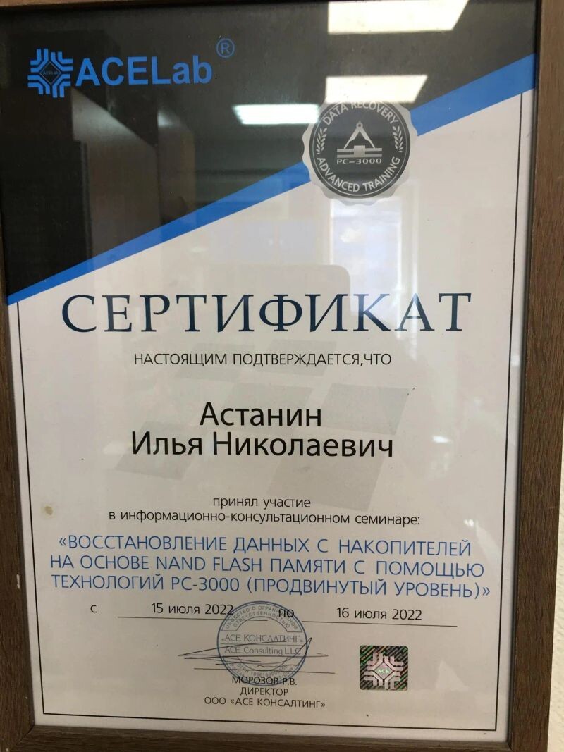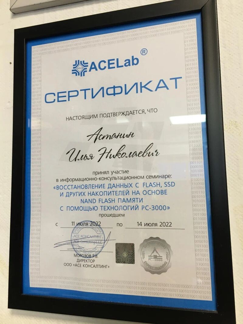 - ACELab, восстановление данных с накопителей ha ochobe nand flash памяти с помощью технологий РС-3000 (продвинутый уровень), 2022 г.