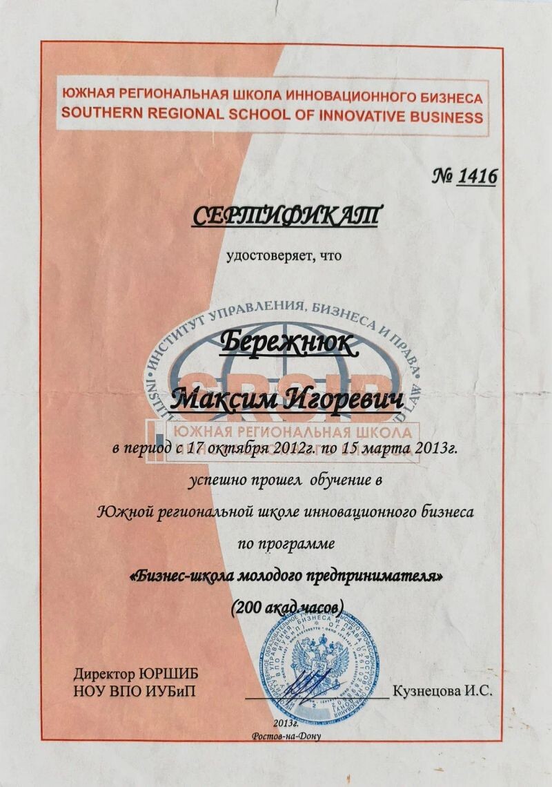 - Институт бизнеса и права, Бизнес-школа молодого предпринимателя (с 2013 г.).
