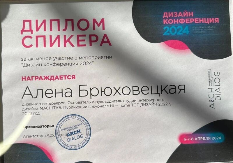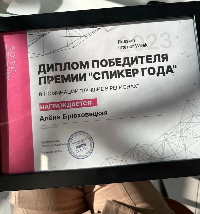 - RUSSIAN INTERIOR WEEK, победитель премии «Спикер года», 2023 г.