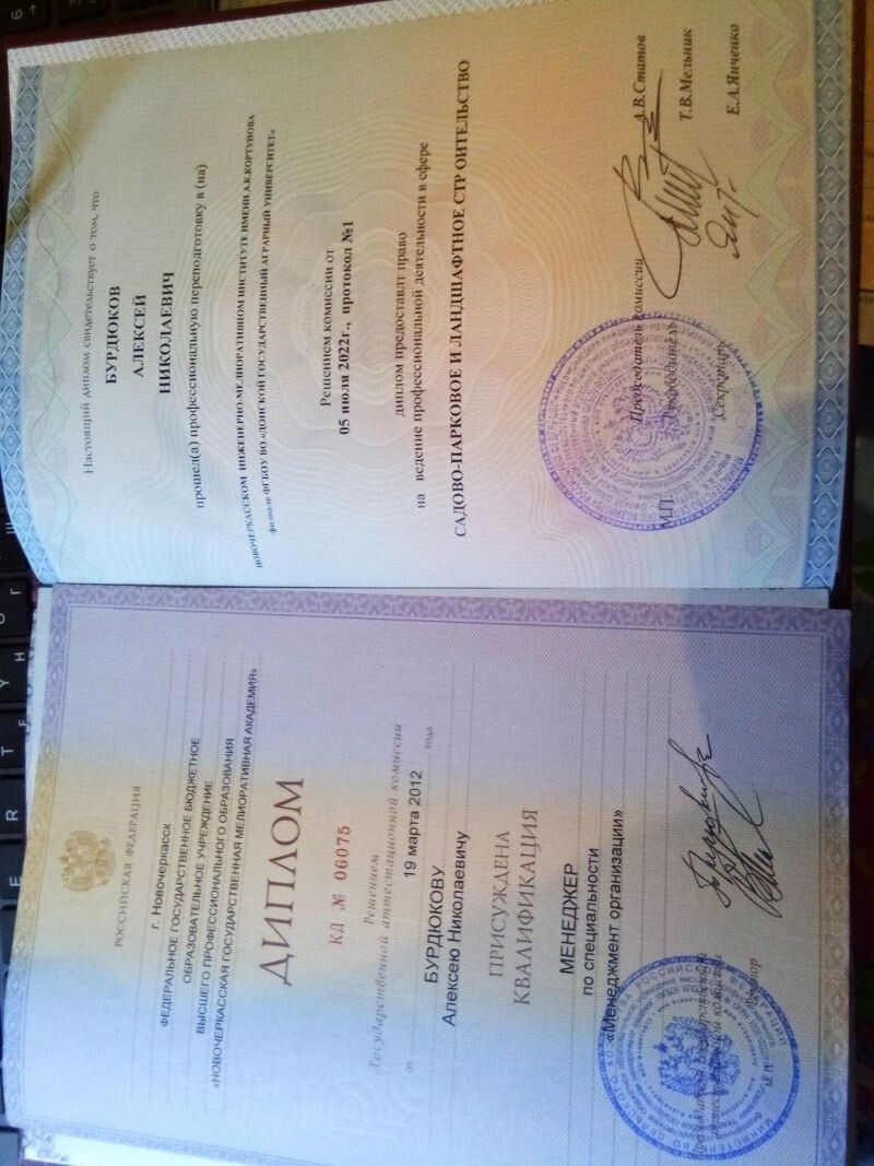 - Садово-парковое и ландшафтное строительство, 2008–2012 гг.