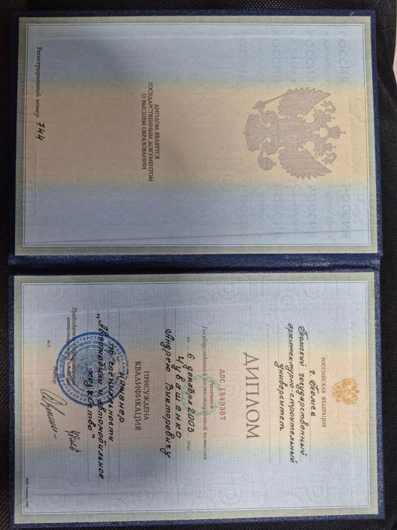 - Томский государственный архитектурно-строительный университет г. Томск, 2000–2003 гг.