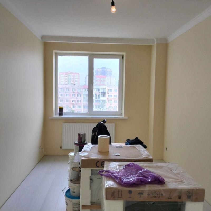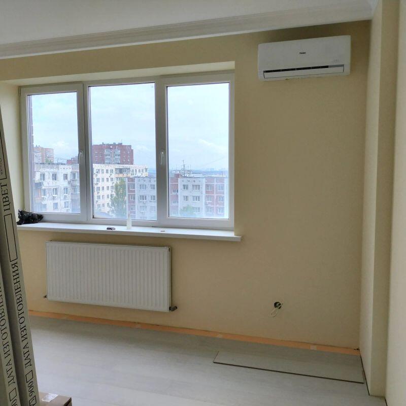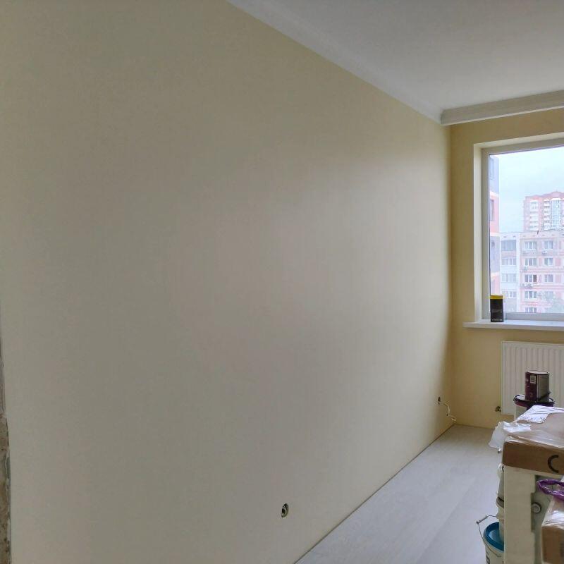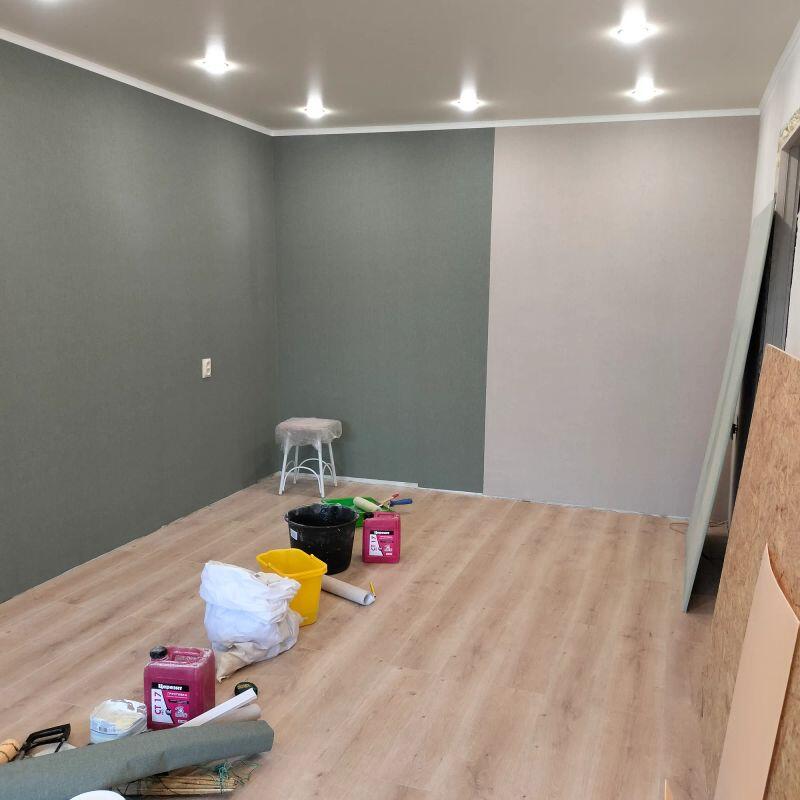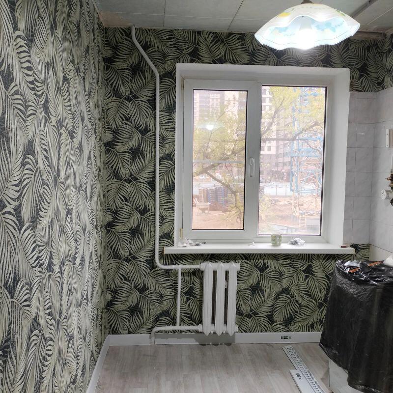 Отличное справление с задачей по удалению старых обоев, которые прочно приросли к бетону. После шпаклевки стены стали гладкими и ровными. Трубы и радиаторы были идеально окрашены.