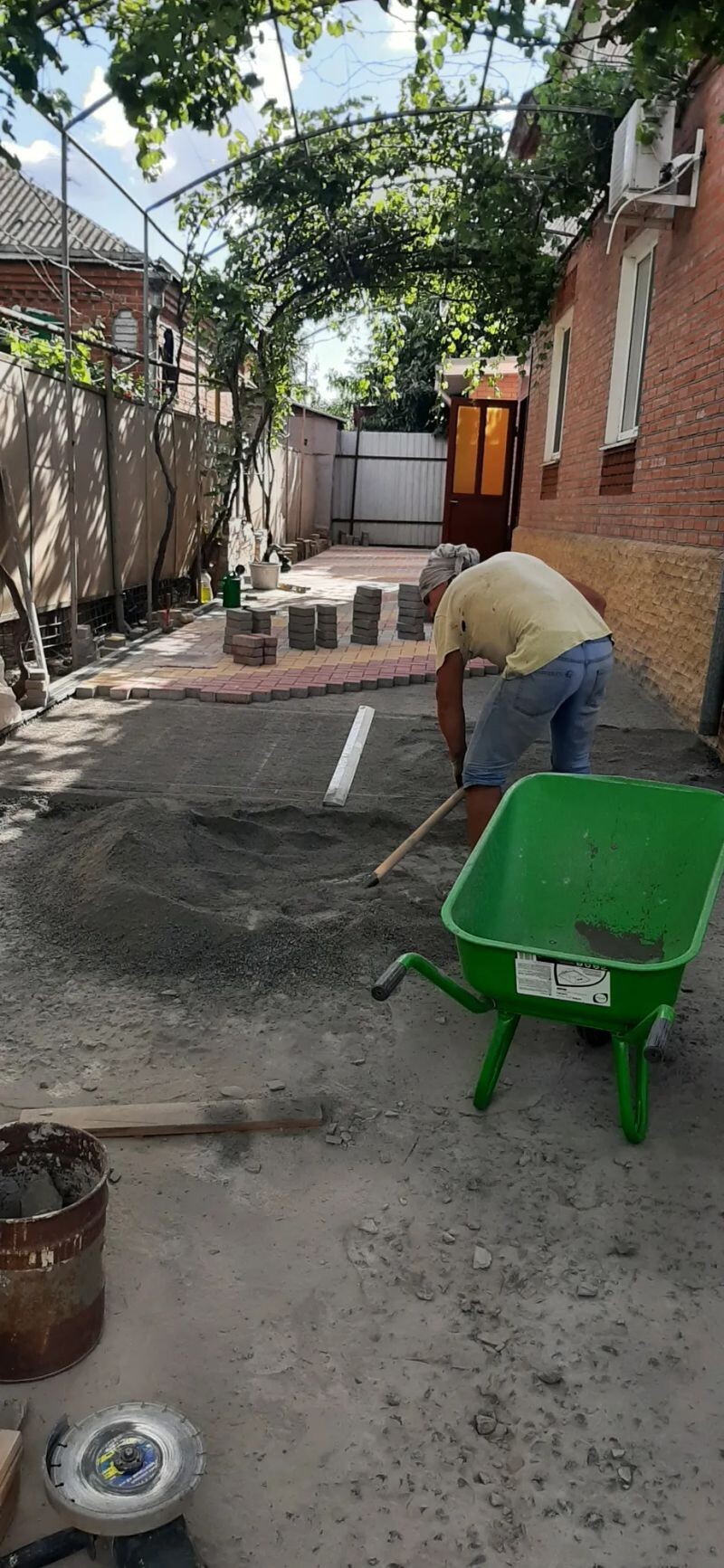 Укладка тротуарной плитки, работа выполнена аккуратно, качественно. Сроки не затягивают и при первой капли дождя не сбегают, а делают что возможно.
