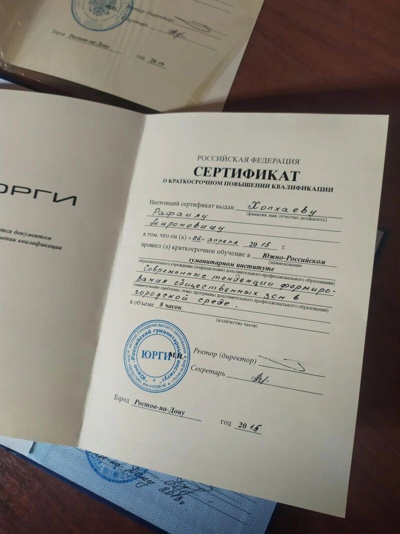 - Южно-Российский гуманитарный институт, программа «Современные тенденции формирования общественных зон в городской среде», 2015 г.