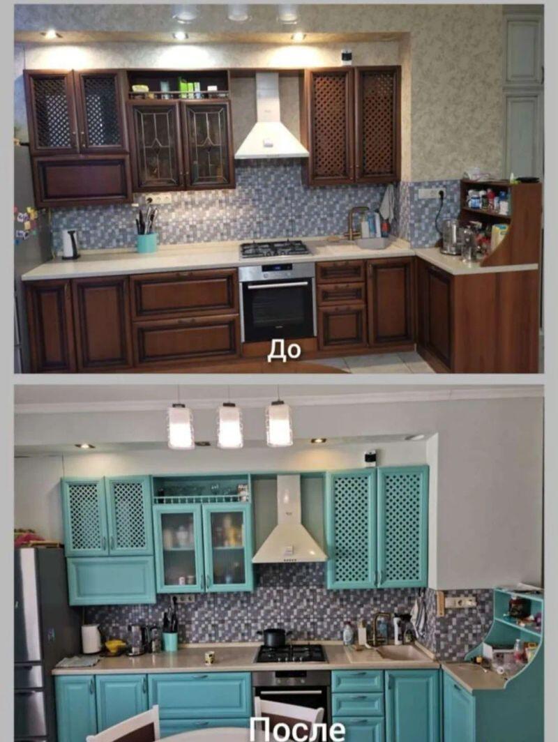 Быстро и качественно произведена реставрация фасада кухонного гарнитура. Ориентированность на клиента, профессионализм, порядочность. Первое фото-до, второе фото-после.