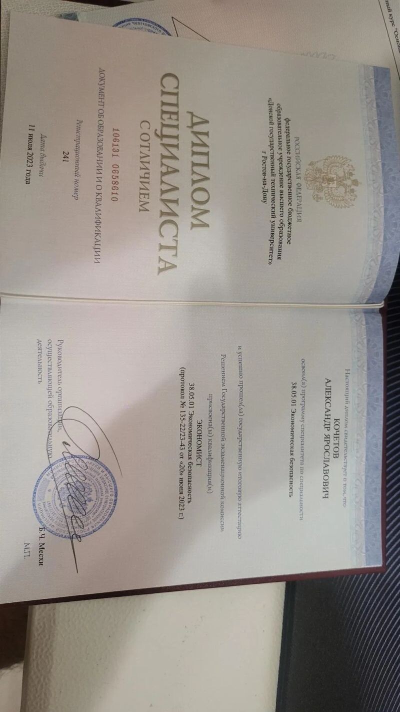 - Донской государственный технический университет, экономическая безопасность, 2018–2023 гг.