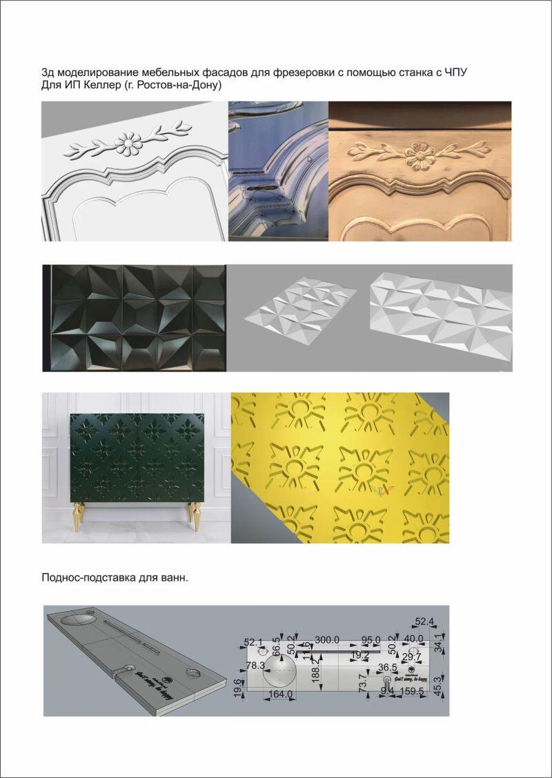 - Дизайн предметов интерьера от 2000 ₽ за усл.Создание 3D-моделей барельефов, рам, объемных элементов, мебельных фасадов для фрезеровки на станке с ЧПУ. Возможно изготовление.