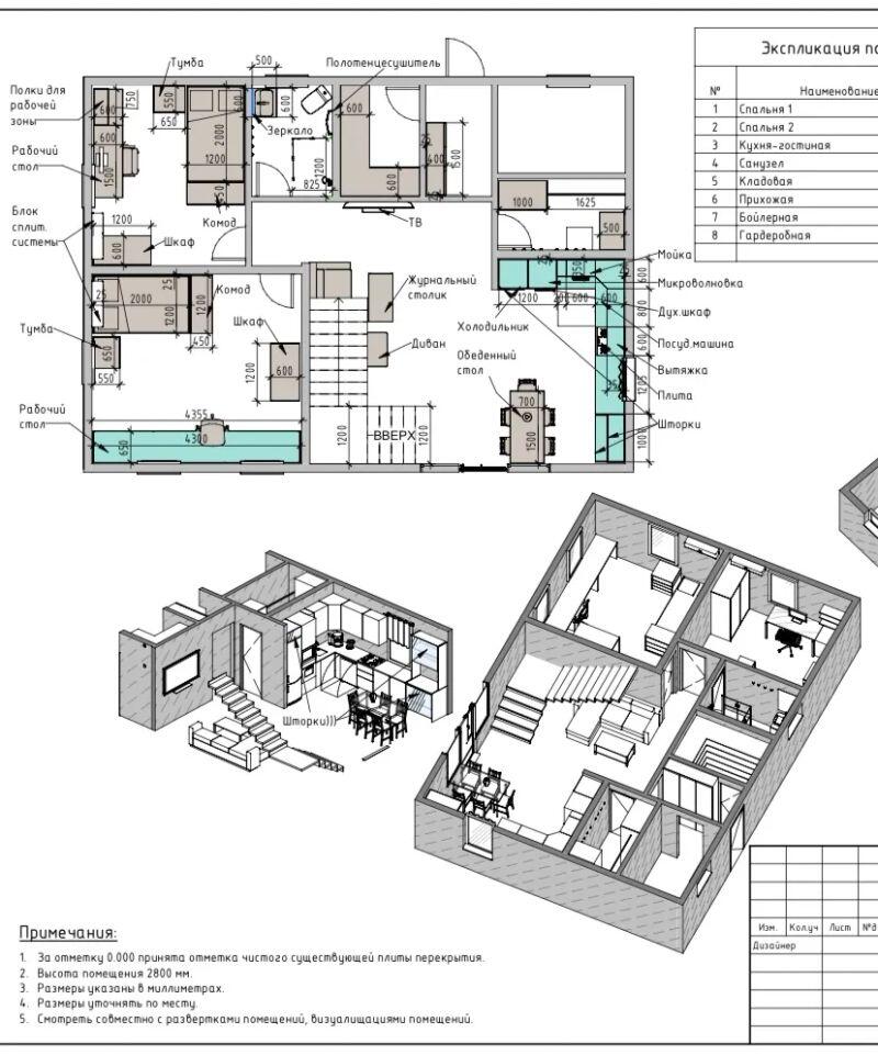 Был выполнен проект в какой-то специальной программе - раскладка розеток, выключателей, источников света в привязке к расположению мебели, кухонной утвари и т.п. Многие решения оказались неожиданными для нас (заказчиков) и очень удобными.