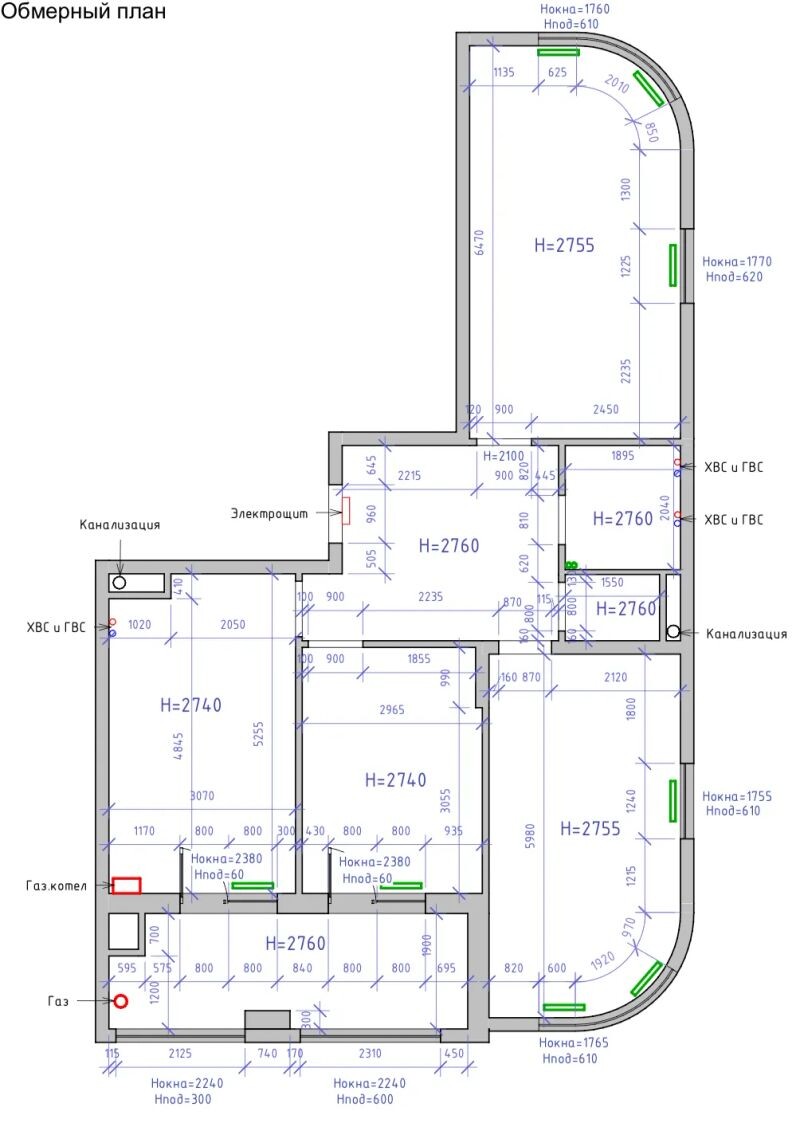 - Обмерочный чертёж 100 - 5000 ₽ за кв. м