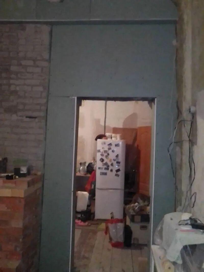 Работа с гипсокартоном, включая укрепление на трудном дверном проеме, выполнена аккуратно и надежно.