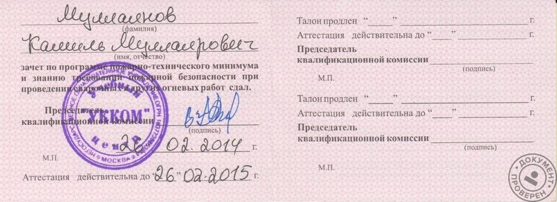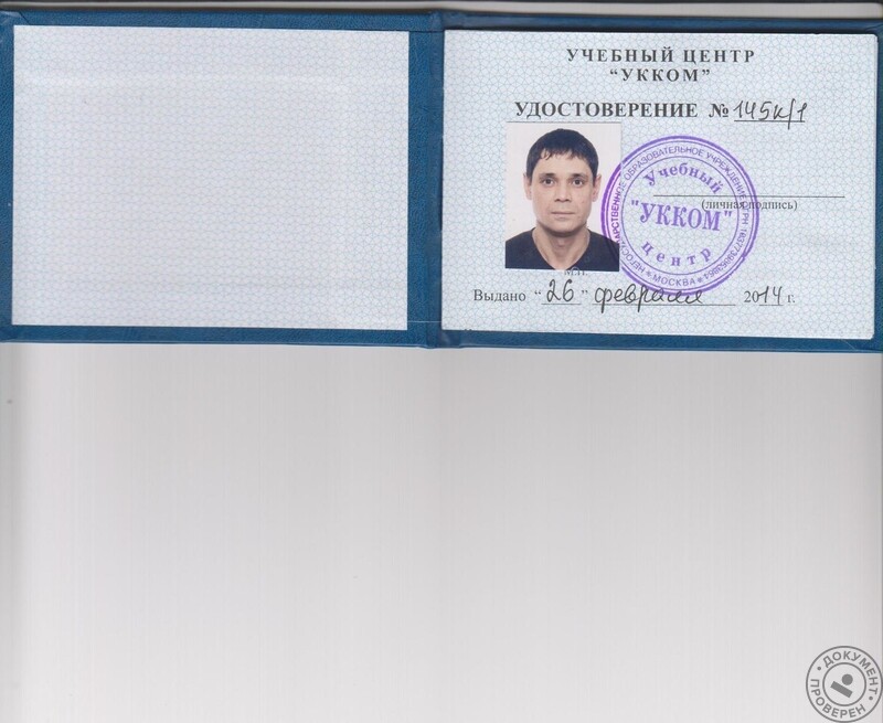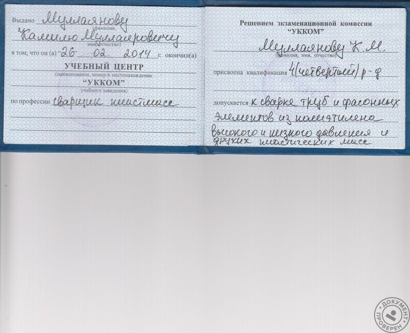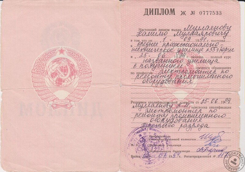 - СПТУ-55 (г. Юрга), специальность – сантехник 4 разряда (1994 г.).