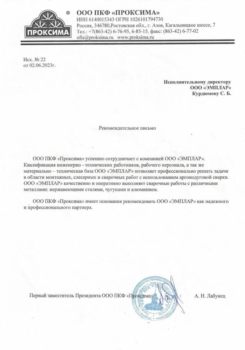 Отзывы о ООО «ЭМПЛАР»