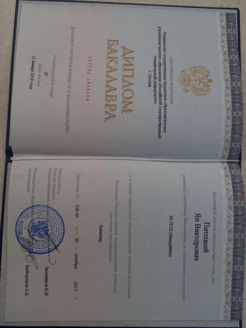 - Федеральное государственное бюджетное образовательное учреждение высшего образования «Российский государственный гуманитарный университет», менеджмент, 2013–2018 гг.