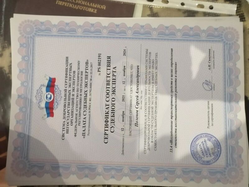- Институт непрерывного образования, программа «Исследование технического состояния дороги, дорожных условий на месте дорожно-транспортного происшествия», 2018 г.