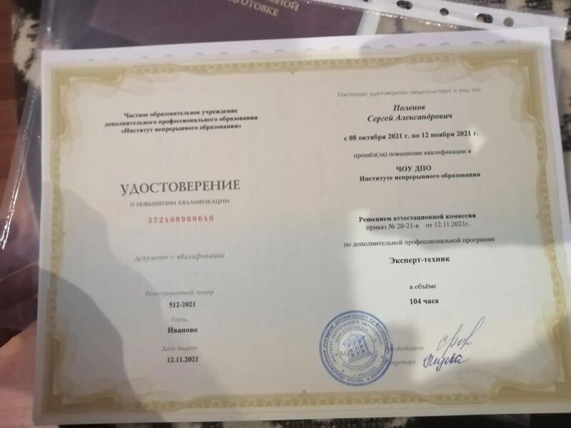 - Институт непрерывного образования, эксперт-техник, 2021 г.