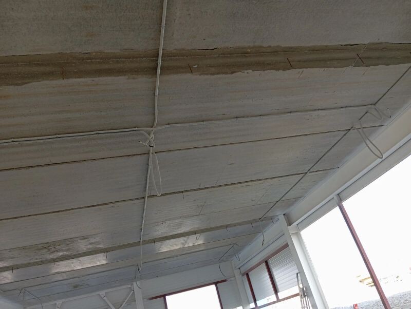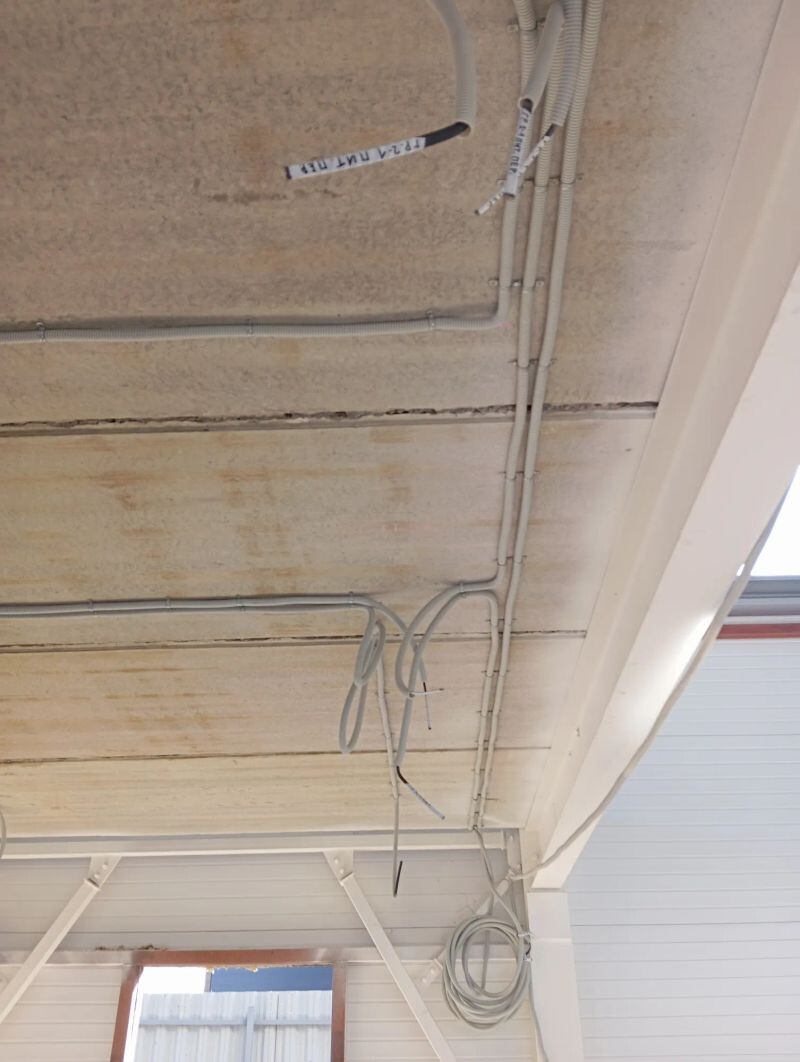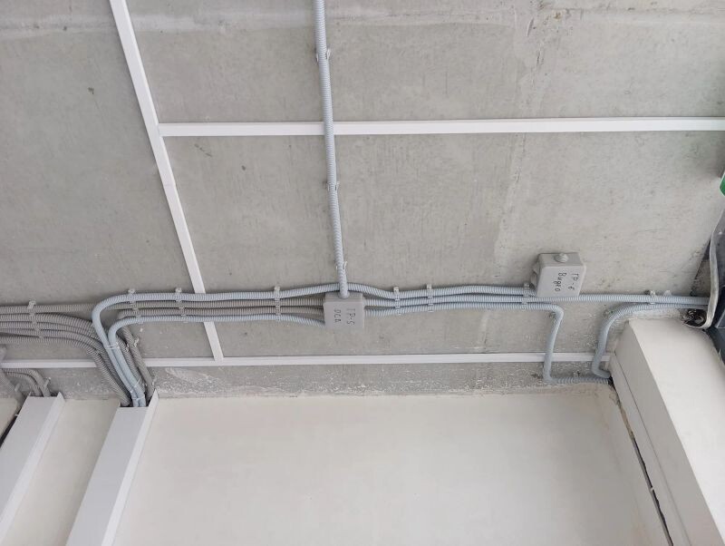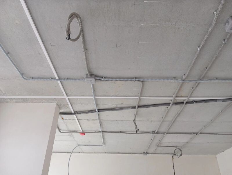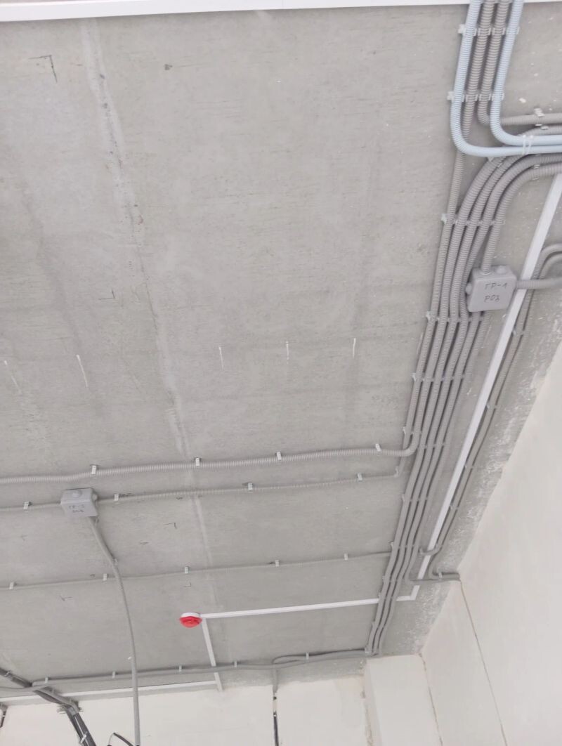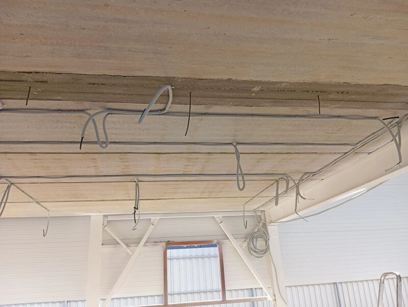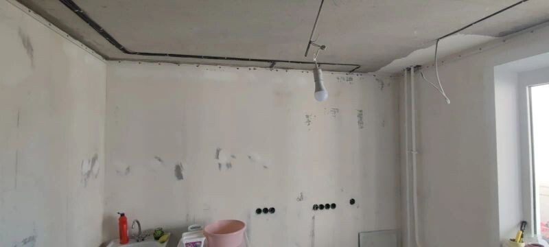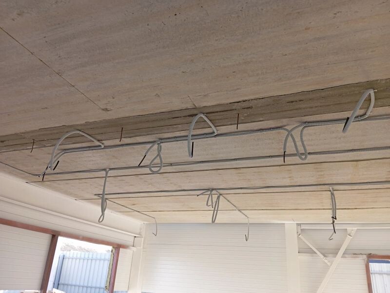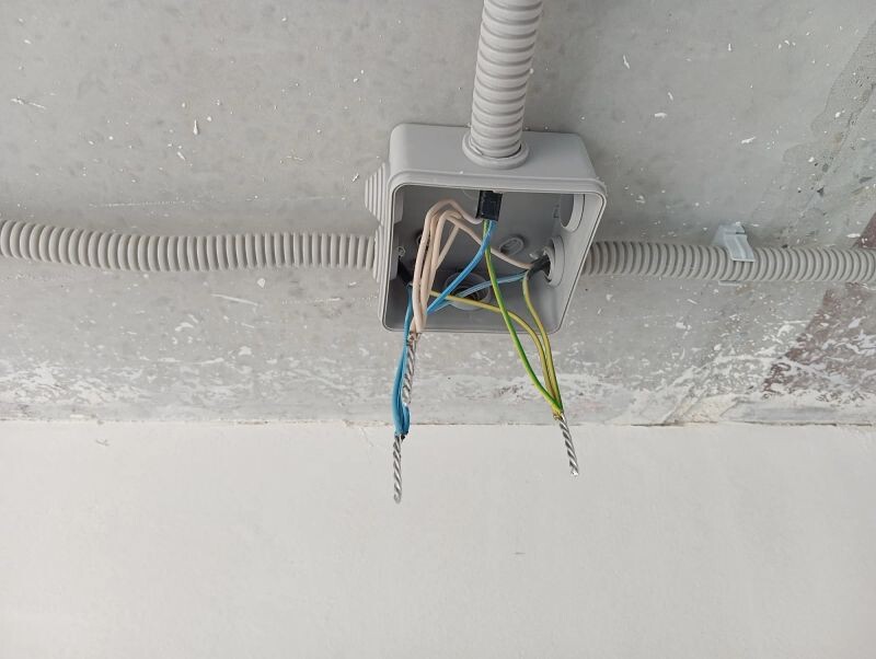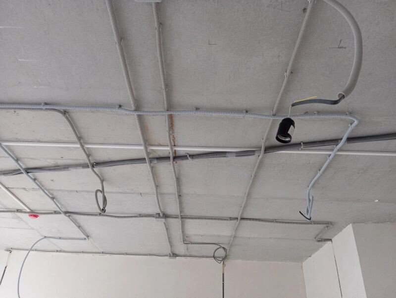 Та-же мы пока не определились точно где будут точечные светильники, поэтому Денис вывел точки с запасом проводов чтобы можно было поиграться с расстоянием.