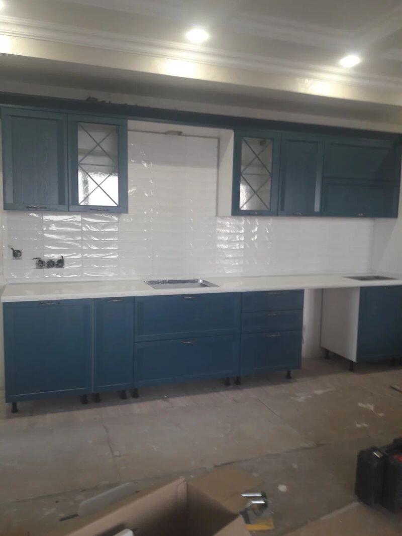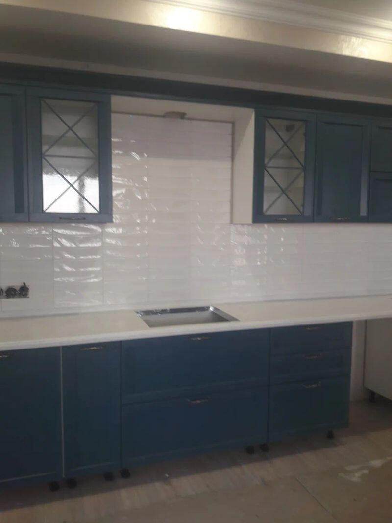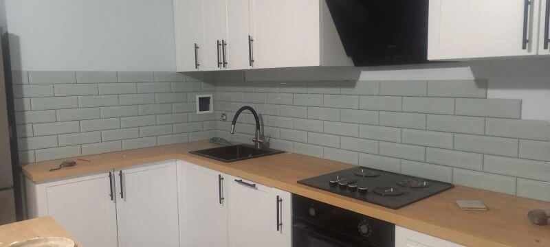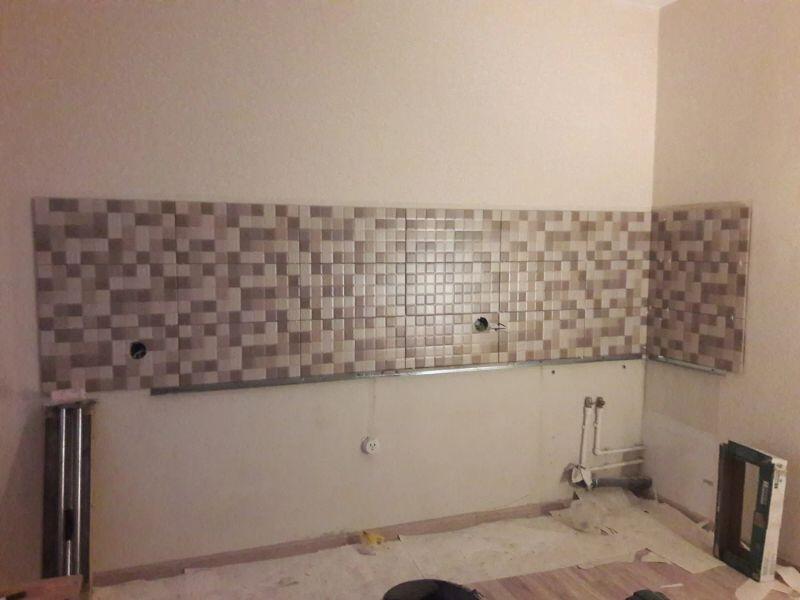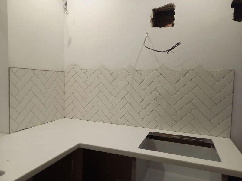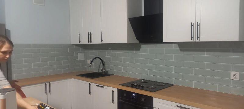 Мастер проявил высокую квалификацию при установке фартука на кухне. Плитка аккуратно и качественно уложена.
