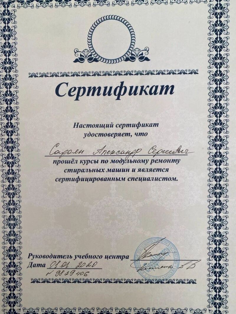 - ООО «ПрофМастер», курсы по модульному ремонту стиральных машин (с 2020 г.).