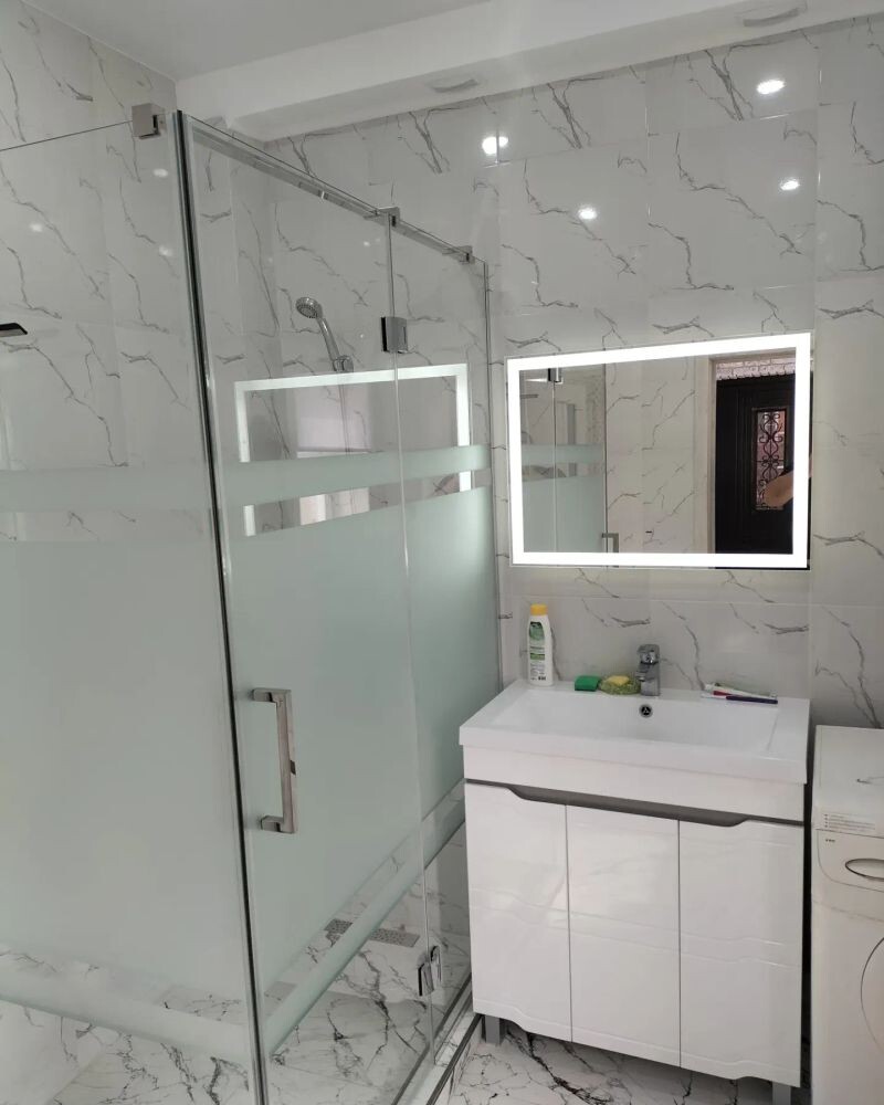 Душевые кабины, навеска зеркал, подключение зеркал с подсветкой