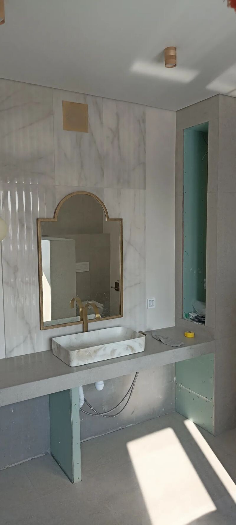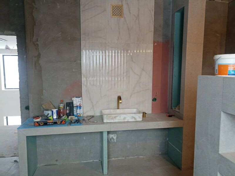 Специалист работу начал как договаривались. Ванная комната 2 на 2м, работать сложно, но мы все вместе дружно это сделали. Спасибо Алексею и его помощнику Сергею за хорошую работу. Плитка мелкоформатная, уложена отлично, получилось очень красиво!!! все поставленные в заказе задачи выполнены и даже больше, которые выплывали по ходу работы. Эпоксидная затирка-это отдельная тема, «кабанчик» и затереть эпоксидкой!! я это осознала тогда, когда все это увидела и унюхала-труд адский!!! Спасибо большое за такую трудоемкую работу. Зато получилось очень красиво и надежно! таких специалистов не стыдно рекомендовать! Что я и делаю. Вся сантехника была также установлена, все работает.