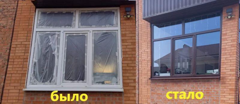 Была сложная ситуация, окна от застройщика стояли 8 лет с заводской плёнкой, всё очистили, сняли старую краску и покрасили в черный матовый как запрошено.