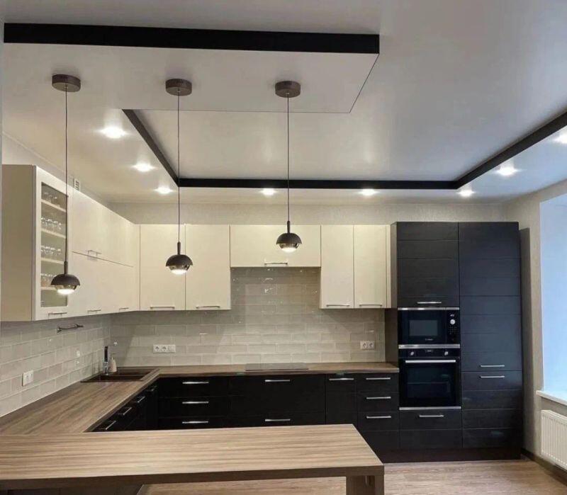- Переход потолков в другой уровень криволинейной конфигурации по договорённости